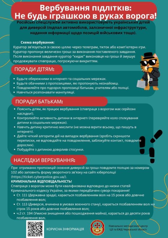 Під час освітнього процесу можна також скористатися іншими укриттями. Найближче укриття знаходиться за адресою: вул. Сумгаїтська, 12 (Черкаський міський палац молоді).