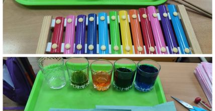 Учні 4-А та 4-Г класів на уроці «Я пізнаю світ» досліджували, як кількість води у склянках впливає на висоту звуку. Під час заняття діти створили власний водяний ксилофон і на практиці переконалися, як змінюється звучання залежно від рівня води. Такі практичні роботи роблять навчання цікавим і наочним, розвивають допитливість, уміння спостерігати та аналізувати, а також розширюють уявлення учнів про навколишній світ.